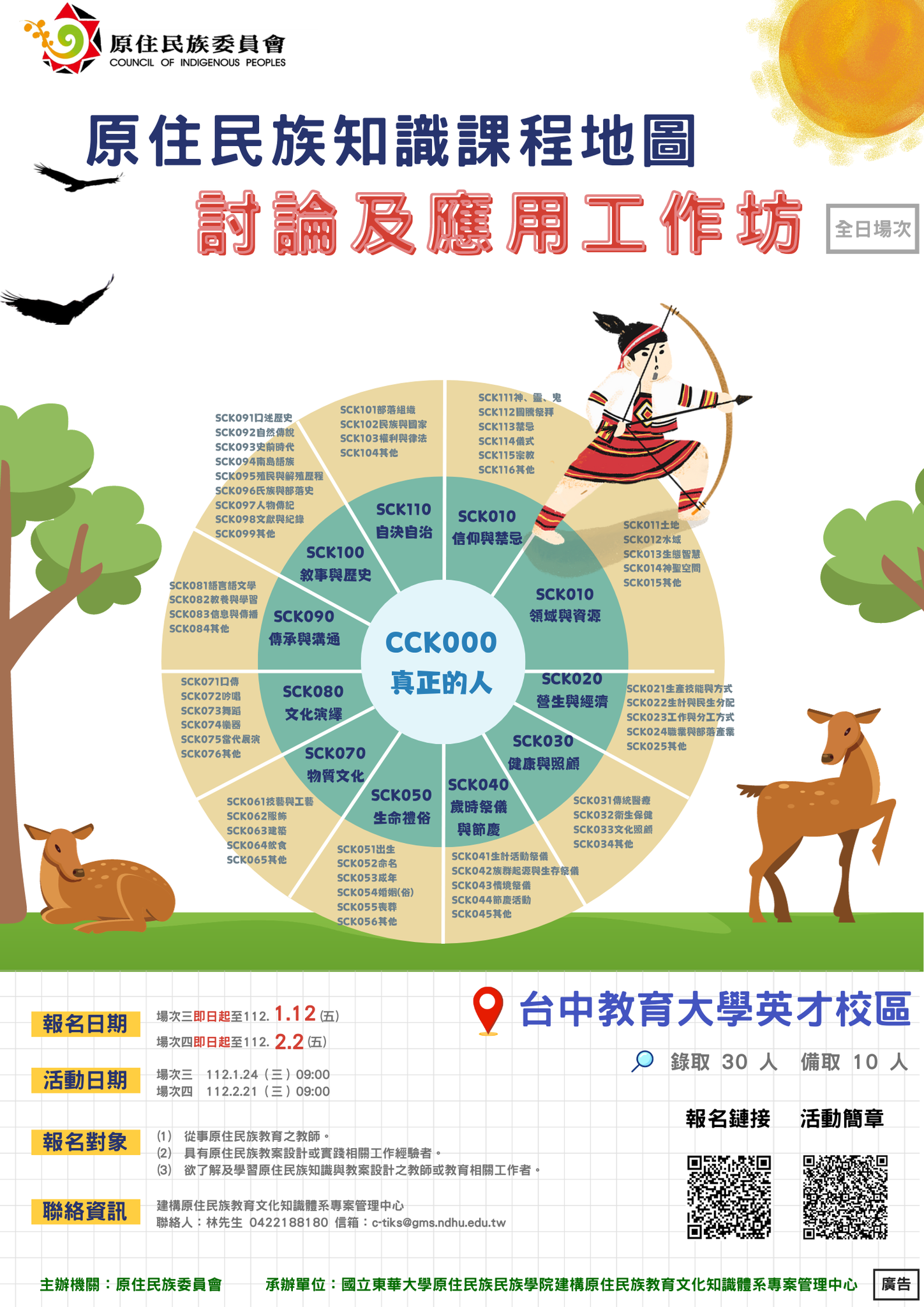 轉知國立東華大學於113年1月24日(星期三)、2月21日(星期三)辦理「112年度原住民族知識課程地圖討論及應用工作坊」報名簡章及活動海報各1份。