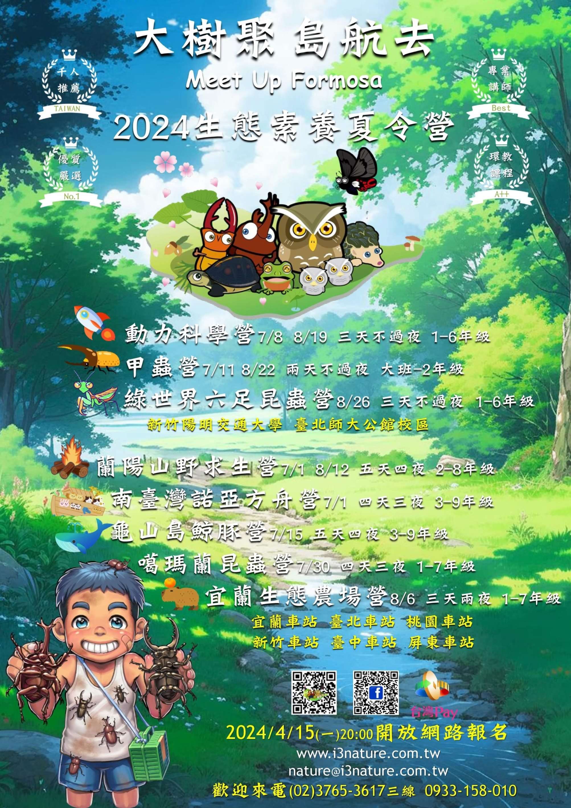 愛上大自然文教將於113年7月1日~8月28日舉辦【大樹聚島航去】2024生態素養夏令營共八種生態主題營隊課程