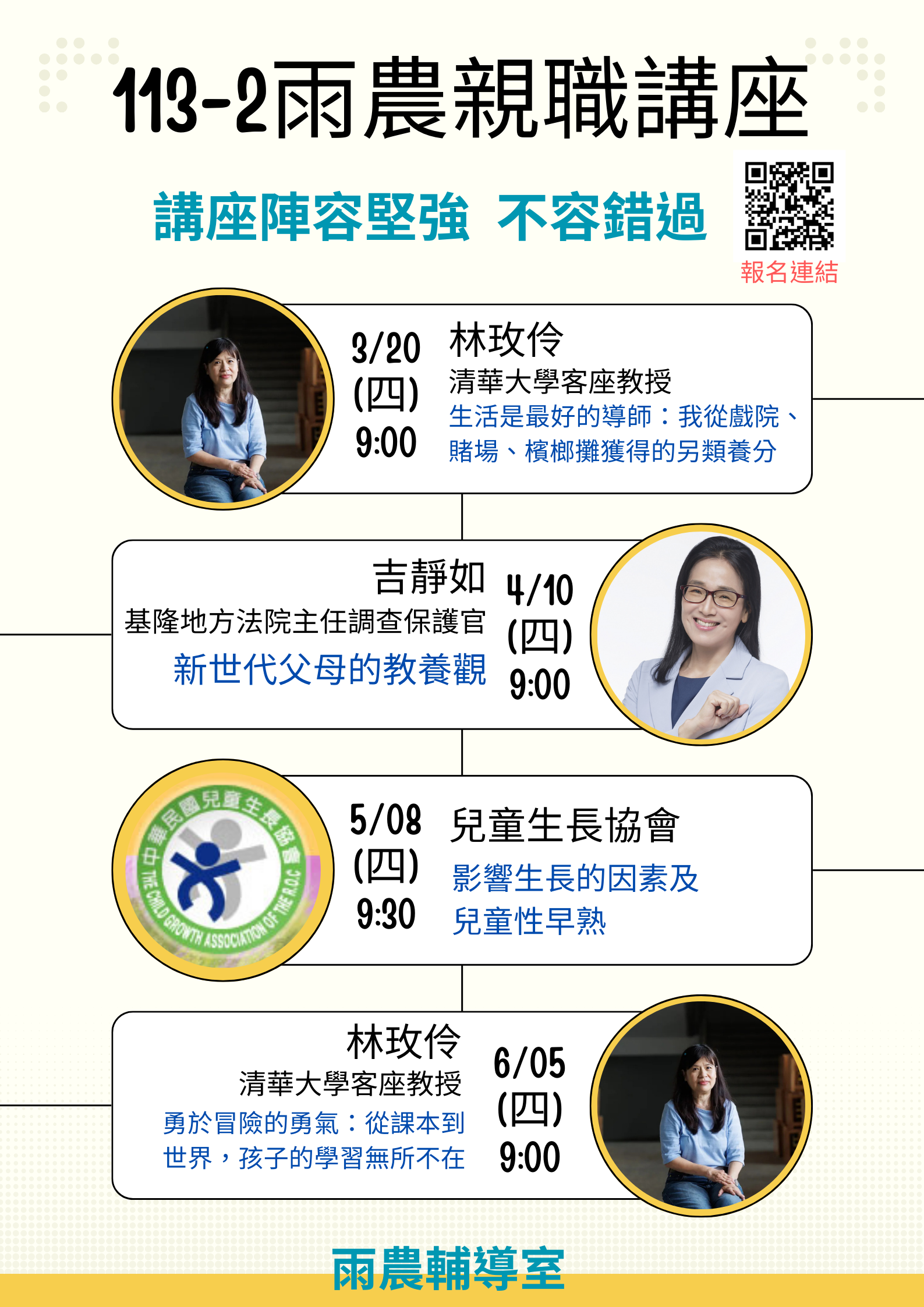 二、每場講座均核發愛的存款簿時數,活動報名連結:https://forms.gle/vc9BHyusgBeEDbVcA