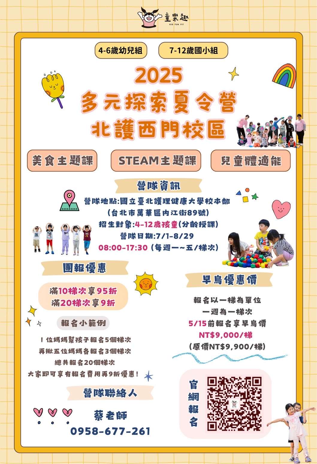 三、本營隊規劃各類多元探索的暑假兒童營隊,內容精采有趣,包含:專項運動、團康活動、手作美食、Steam美術實驗課、多元才藝課程、昆蟲生物課等課程,給孩子盡情享受快樂、挑戰自我,擁有一段難忘的暑假時光。