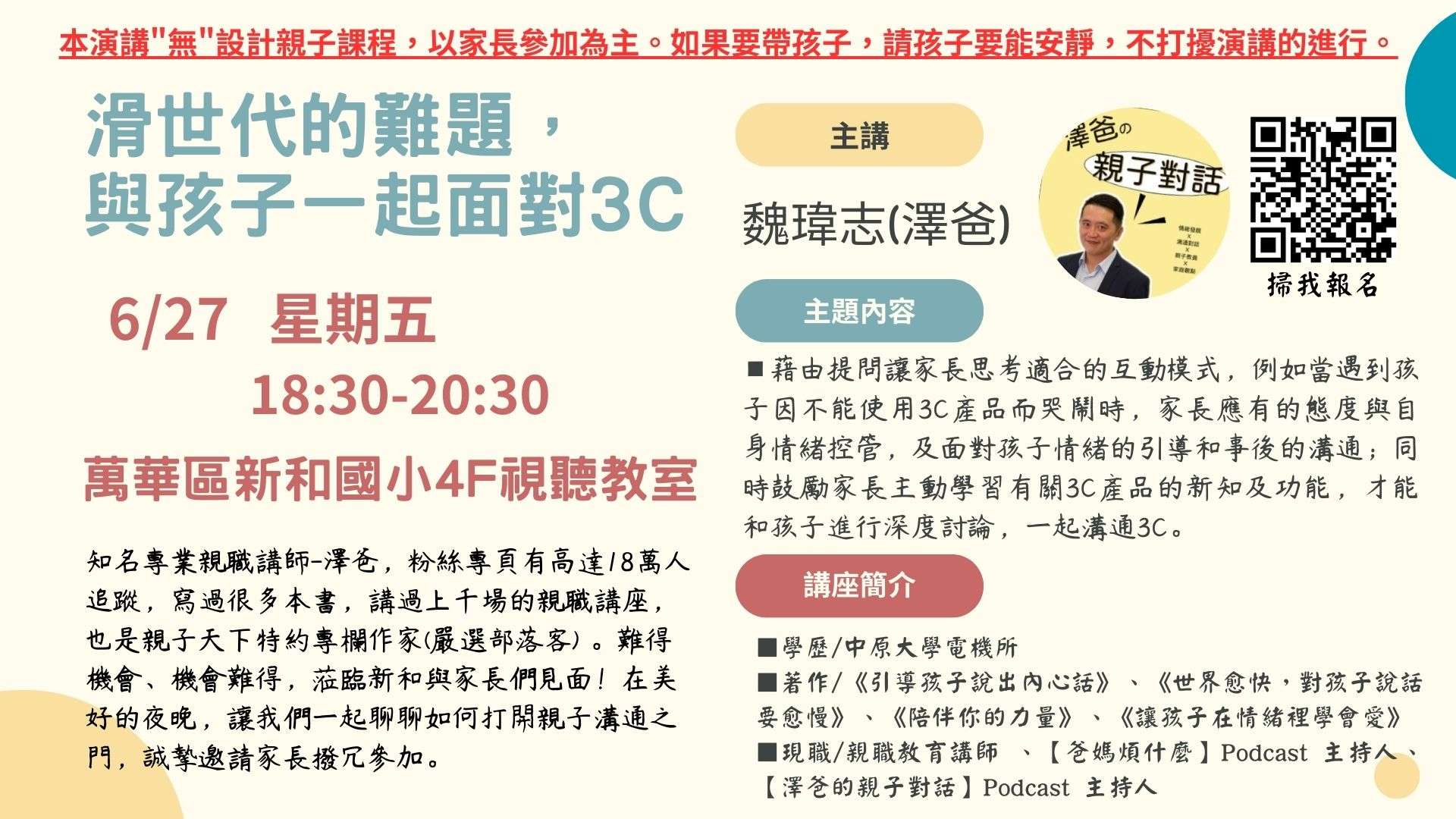 講座主題:滑世代的難題,與孩子一起面對3C