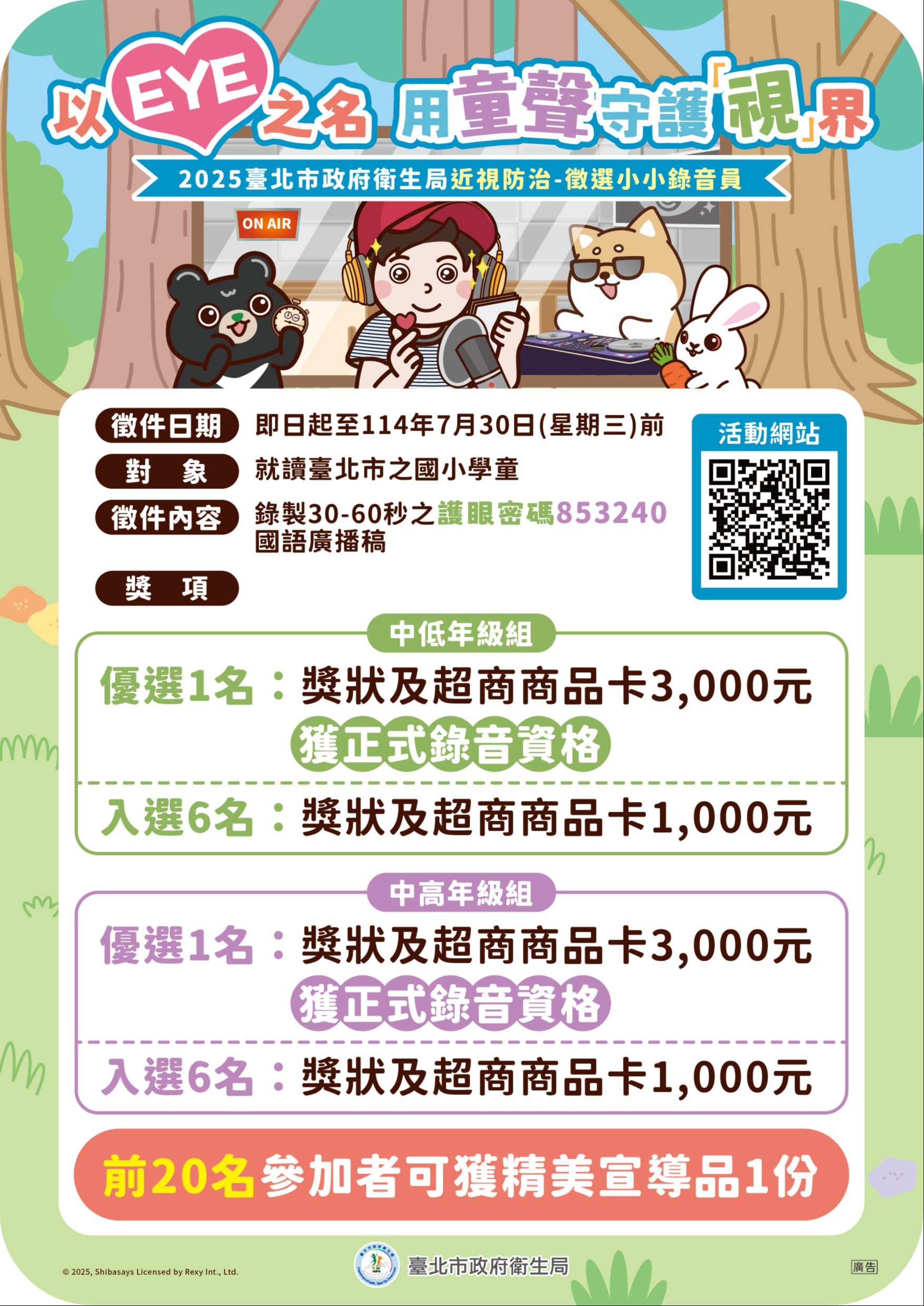 四、活動簡章詳本局網站/高度近視防治專區(網址:https://pse.is/7tpsx7),檢附活動圖卡(如附件)1份,鼓勵學童踴躍參加。
