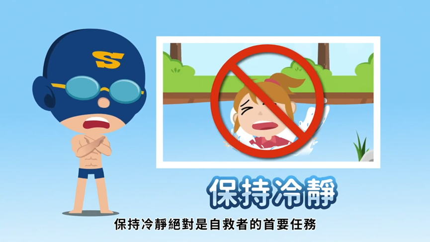 「叫-呼叫119、118、110、112」、「伸-利用延伸物」、「拋-拋送漂浮物」、「划-利用大型浮具划過去」,協助溺水者脫困。