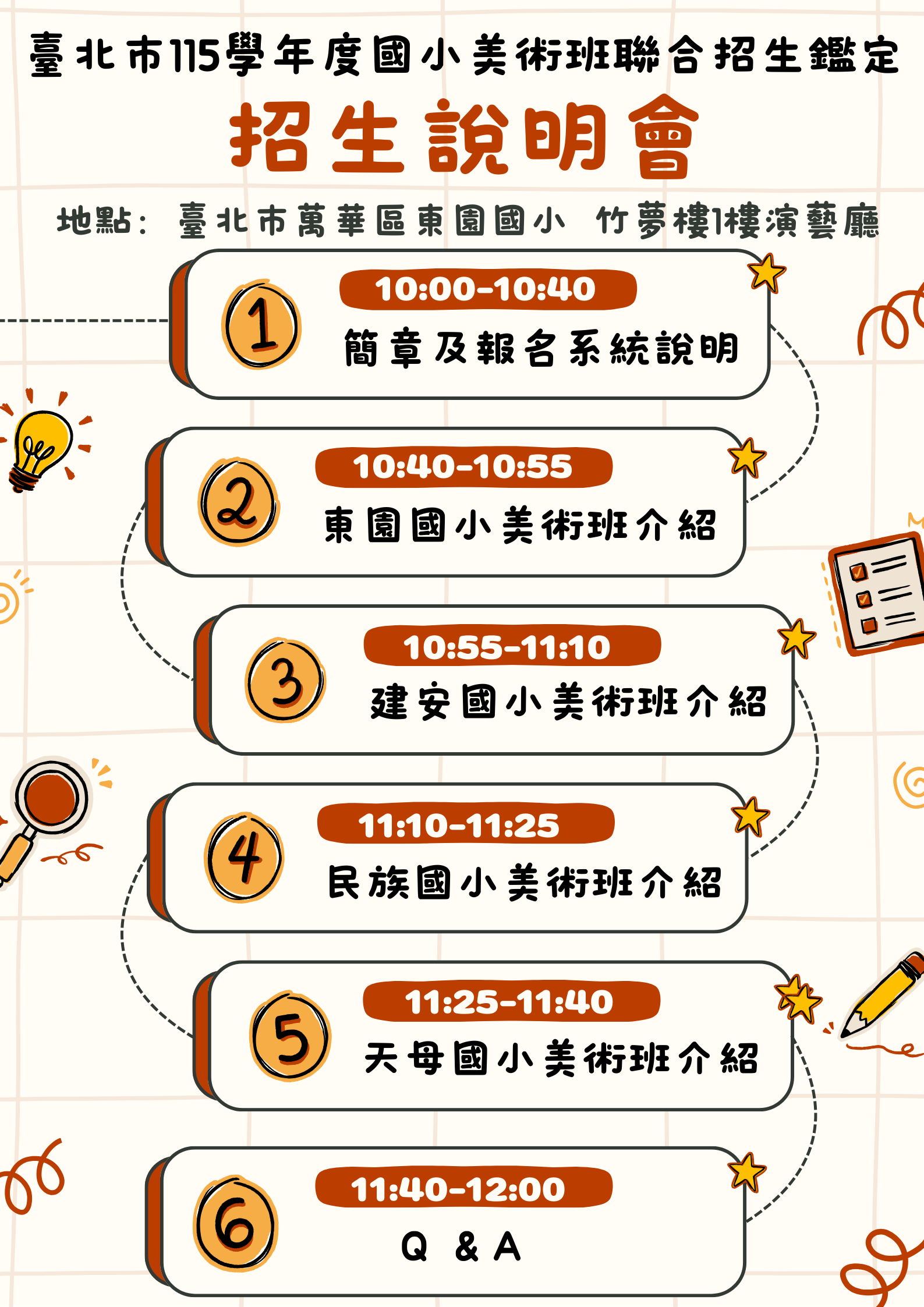 地點:東園國小竹夢樓1樓演藝廳。(臺北市萬華區東園街195號)